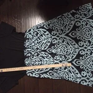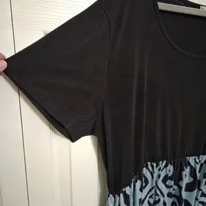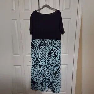 Soft and stretchy maxi dress features a striking black and blue pattern, perfect for any casual occasion. Its stylish design offers both comfort and sophistication.