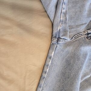 Fraying on ankles. Thinning to inner thighs and a small stain on right leg pictured.