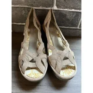 Fly London Yadi Wedge Taupe Suede Slip On Open Toe Cut out Shoe Euro 38 US 7