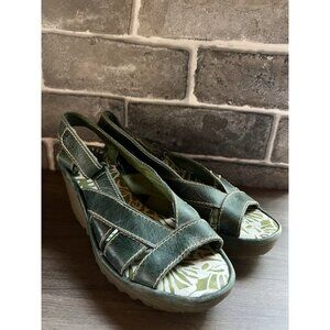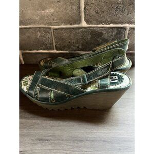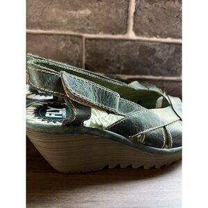 Fly London Yall Green Wedge Womens Sz 37 6.5/7 US