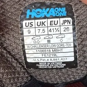 The Hoka One One Challenger Low Women's Gore-Tex shoe in size 9 is a stylish and functional athletic sneaker designed for active women. With a low top shaft style and Goretex upper material, this shoe provides a comfortable and waterproof fit for outdoor activities. The brown color and Hoka One One branding add a trendy touch to the design, making it a versatile option for both fashion and performance. The shoe's model, style code, and department ensure a perfect fit for women looking for a durable and breathable footwear option.