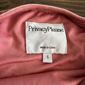 This women’s Privacy Please bodysuit is new without tags and made from rose pink velvet, offering a luxe, feminine look.