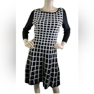 Ralph Lauren NWT Cotton Knit 3/4 sleeve black and White Geometric Dress Size 14