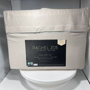 Rachel Zoe King Sheet Set in a soft neutral beige tone. Made from 100% cotton for breathable, comfortable everyday use.