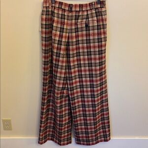 Stylish plaid wide-leg trousers. Features a classic check pattern. Avery is It. Our fan-fave trousers feature a fluid silhouette, double pleats, and a flattering high rise. • 68% polyester, 30% viscose, 2% other • Flowy wide-leg silhouette • Double pleats • High rise • Side slant pockets • Back welt pocket • Front zip • Dry clean Dimensions • 12" rise • 30.75" inseam • 13.25" leg opening Waist Layflat approximate. 16”-18”