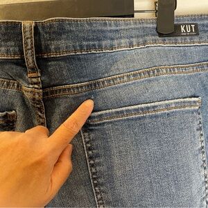 KUT from the Kloth Donna High Rise Fab Ab Ankle Skinny Jeans Size 18 Raw Hem. In good preworn condition. 91% Cotton, 7% Repreve, and 2% Spandex. Designed with Fab Ab technique that is flattening, slenderizing and provides comfort all day long. Inseam is approximately 28”, rise is approximately 13” and waist across is approximately 19”. There are some tiny pulls as shown in last pics.