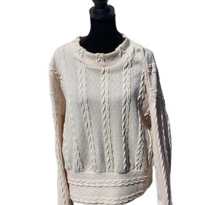 June & Hudson Cable Knit Sweater Cream Colored Size XLarge