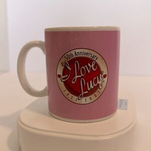 I Love Lucy 50th Anniversary Pink Ceramic Coffee Cup Mug Job Switching. Condition is Used. Shipped with USPS Ground Advantage.