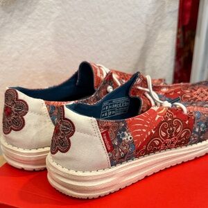 Hey Dude Red and Blue Paisley Sneakers size 8