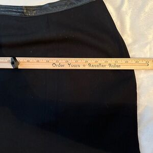 Vintage Elizabeth New York Black Wool & Leather Midi Swing Skirt 16 full twirl