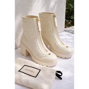 Brand new Nordstrom floor model. Never worn outdoors; light in-store handling only. A very faint cosmetic mark on the back of the right heel is present and fully disclosed — please see photos. Boots have been cleaned and conditioned. Includes 2 interior dust bags and 1 oversized Gucci dust bag.
