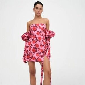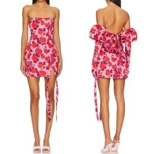For Love & Lemons Huda Satin Mini Dress Puff Sleeve Gloves Floral Coquette Sz M