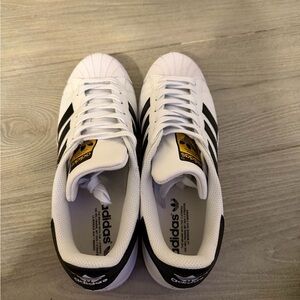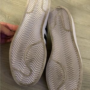 Classic Adidas sneakers. White base with iconic black stripes. Comfortable fit. ** No box - warn once**