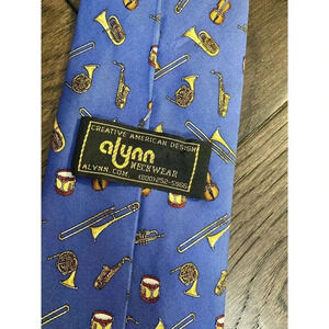 Elevate your style with this Alynn Neckwear silk neck tie. Crafted with brass section music jazz instrument band, this tie is perfect for any music lover. The blue color and music theme make it a unique addition to your wardrobe. Made of 100% silk, this tie exudes luxury and sophistication. Ideal for men who want to add a touch of class to their outfit, this tie is a must-have.