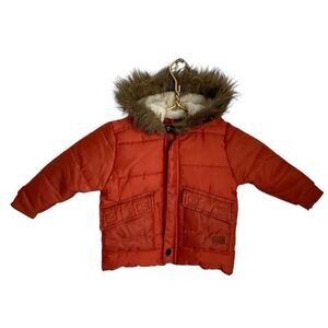 7 For All Mankind Toddler Orange Jacket Hood Faux Fur Sz 18 Months Warm NEW NWT