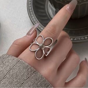 This elegant silver flower ring adds a touch of sophistication to any outfit. Perfect for any occasion.