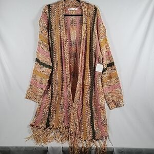 NWT Altar's State Open Front Crochet Knit Cardigan Tassles Multiple Color Sz 3XL. Pit to pit 24", length 36"