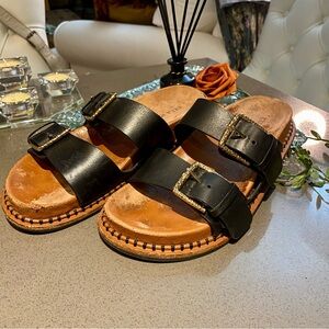 Ulla Johnson Black Sandals with Gold Buckles Size 7 1/2