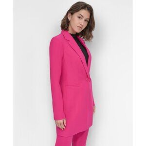 DKNY Petite Notched Collar One-Button Longline Blazer Pink Size 14P MSRP $169