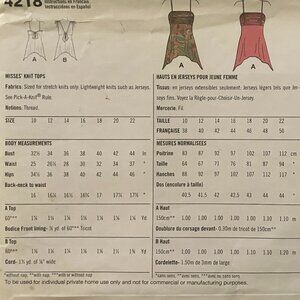 Simplicity 4218 ©2006 Size 10 to 22 Bust 32.5 to 44 Easy Knit Tops Flared with Spaghetti Straps or Sleeveless Gathered at Shoulders Uncut and Complete. Envelope has creases and bumps in corners.