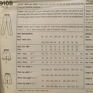 Simplicity 9108 ©1989 Size 18 to 22 B40 to 44 Misses Pants and Shorts Pleated pants and shorts with left side pocket opening; belt loops (carriers); buttoned waistband. Uncut and complete. Envelope is torn at side (and into back) and creased at size. Pen on front.