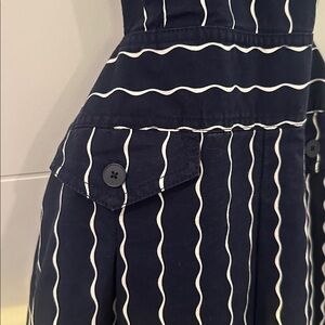 Elegant navy jumpsuit with white stripes, perfect for any occasion. Sleeveless design for a chic look.