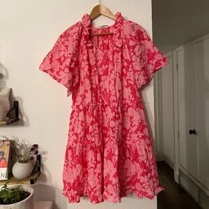 Tuckernuck Hyacinth House Pink Textured Floral Thea Mini Dress 100% cotton L