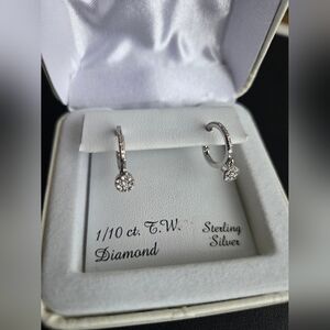 For sale NEW WOMENS 925 STERLING SILVER WITH 0.10 CT GENUINE DIAMONDS DANGLING EARRINGS set.