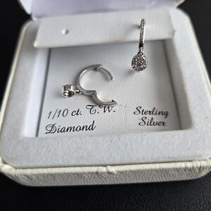 Included: silver earrings with diamonds in a box (1 set).