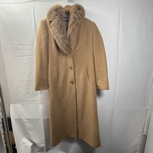 Marvin Richards Camel Wool Long Coat with Genuine Fur Collar