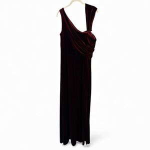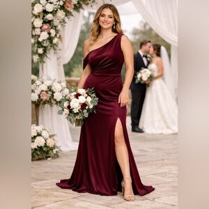 Revelry Burgundy One-Shoulder Satin Bridesmaid Gown w/ Slit | Size 16 | NWT