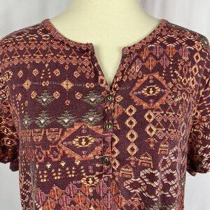 NEW Coldwater Creek Southwestern Aztec Short Sleeve Henley Top Women’s Large