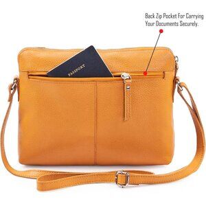 Women Mustard Imported Leather Polyester Crossbody Sling Shoulder Crossover Bag