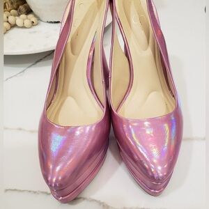 Shimmering pink heels with a sleek design. Perfect for adding flair to any outfit.