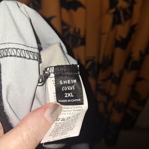 Orange and black bat print dress. Lace up bodice. Stretchy panel in the back. Size 2X by Shein. Still like new.