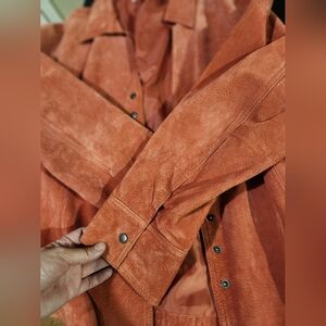 Elegant rust suede jacket with classic collar. Ideal for layering. Silk lined, barely ever been worn.