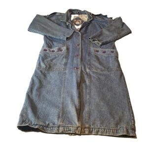 Vintage 1990s Blue Creek Acid Wash Denim Full Length Jean Jacket Fall Outerwear
