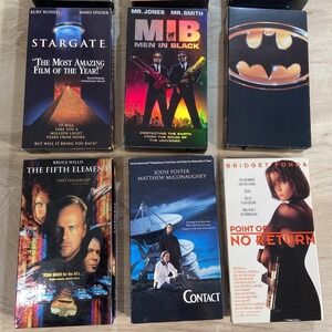 This lot of 9 VHS tapes includes a mix of action, horror, classic, and sci-fi films in English. The tapes are from Warner Home Video studio, providing a variety of entertainment options for fans of different genres. Whether you're looking for thrilling action-adventure movies or spooky horror films, this bulk lot offers a diverse selection to enjoy on your VHS player.