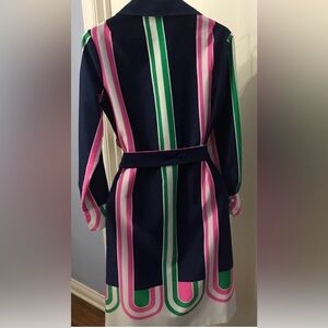 Lanvin Navy, Pink, and Green Striped Long Sleeve Dress