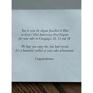Celebrate history with this beautiful vintage Fostoria luncheon plate, created for Avon's 92nd Anniversary in 1978. This lead crystal plate is a stunning piece of collectible glassware.