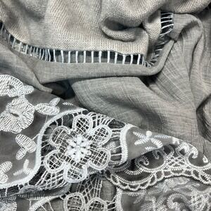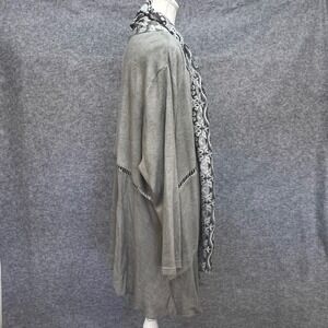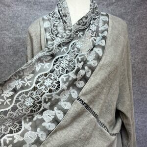 Ali Miles Lace Collar Open Front Cardigan Sweater Gray Boho Lagenlook Flowy 2X