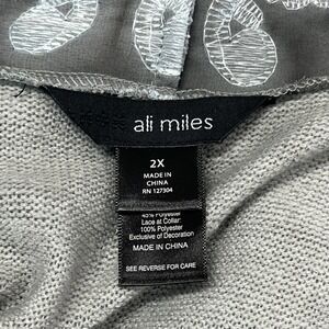 Ali Miles women's open front cardigan sweater in size 2X. This comfortable and stylish piece features long sleeves, a decorative lace trim at the collar, and an asymmetric hemline. The textured knit adds visual interest, and the relaxed fit makes it perfect for layering. Ideal for casual outings, travel, or a relaxed evening.