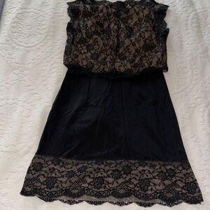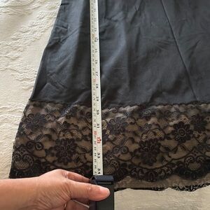 Gently Loved This elegant black lace slip dress is perfect for any occasion. The intricate lace detailing adds a touch of sophistication. Ideal for evening events or a night out. Pics dont do this beauty justice! 100% Nylon