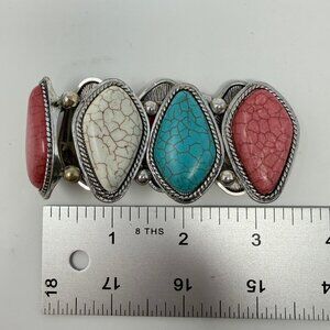 Southwestern Chunky Faux Turquoise Stretch Bracelet Stones Beads Blue Red White