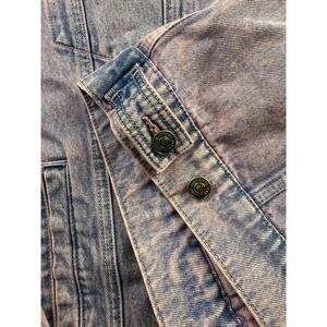 Step out in style with this fantastic Forever 21 Acid Wash Denim Jacket! This women's size Medium jacket offers a trendy oversized fit, perfect for layering over your favorite tops and dresses. Its unique purple acid wash gives it a cool, vintage-inspired vibe that's sure to turn heads. You'll love the classic trucker jean coat design, complete with functional pockets and sturdy button closures.