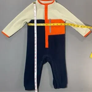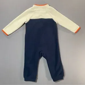 Gorpcore. Utility. Sporty. Outdoorsy. Minimalist. Color-block. Cabin Core. Adventure. Active Baby. Rugged. Cozy. Modern. Gender Neutral. Unisex. Winter. Layering. Fall. Cold Weather. Sleepwear. Playwear. Daycare. Travel. Snow Suit Base. Camping. Stroller Walk. Everyday. Loungewear. Lounging. Pajamas. Sleep & Play. Transitional. Microfleece. Button Front. Mock Neck. Snap Buttons. Zippered Chest Pocket. Color-Block. Navy Blue. Cream. Orange. Long Sleeve. One Piece. Romper. Jumpsuit. Coverall. Baby Boy. Baby Girl. Warm. Soft. Snap Inseam. Easy Diaper Change. plush.