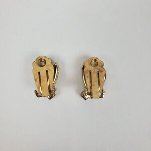 Vintage Topaz Yellow AB Navette Crystal Rhinestone Gold Tone Clip On Earrings