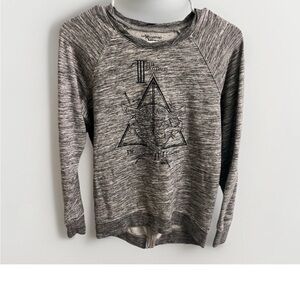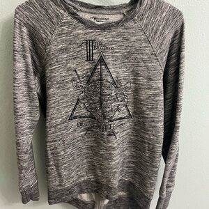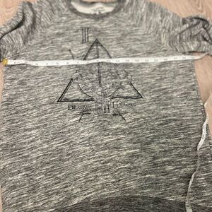 This is a heather gray women's long sleeve sweatshirt in size small from the Universal Studios theme park, It features the deathly hallow symbol from Harry Potter. The inside is a terry material. It is in very good used condition. Please see photos for measurements, materials, and exact condition. Orders ship same or next business day. Please feel free to reach out with any questions. Thanks for looking!