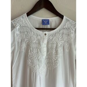 Pine Cone Hill Fine Linens Annie Selkie nightgown. White on white embroidery. Lightweight cotton. Shell buttons in front. Excellent condition. Women's size XS. 18" pit to pit measured across laying flat, 38.5" long