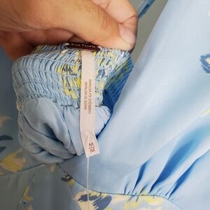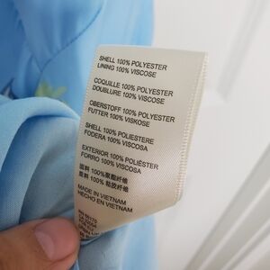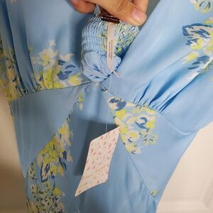 Brand new with tags. Excellent condition. Blue. Floral print. V neckline. Open back. Strappy criss cross back. Adjustable straps. Satin like fabric. Midi length. Lined. Great wedding guest dress!